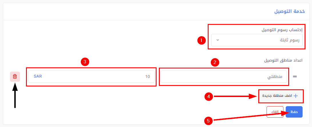 5) خدمة التوصيل برسومها الثابتة حسب المنطقة مقابل الرسوم المتغيرة