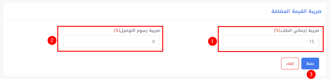 1) أدخل ضريبة القيمة المضافة لإجمالي الطلب، أو يمكنك إدخال 0 إذا لم تكن ترغب في ذلك.
