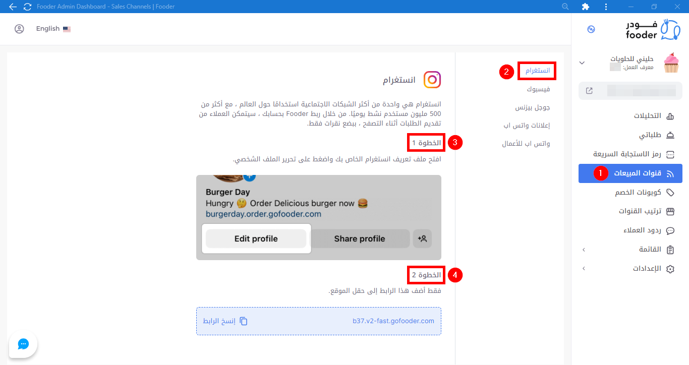 يُعد إستخدام منصات التواصل الاجتماعي مع فودر لايت Fooder Lite أمر في غاية السهولة مما يؤدي إلى زيادة المبيعات ويساعد على جلب المزيد من الوعي لعلامتك التجارية. وكذلك فودر لايت Fooder Lite يتيح لك الفرصة لإضافة جميع منصات التواصل الاجتماعي كما موضح ...