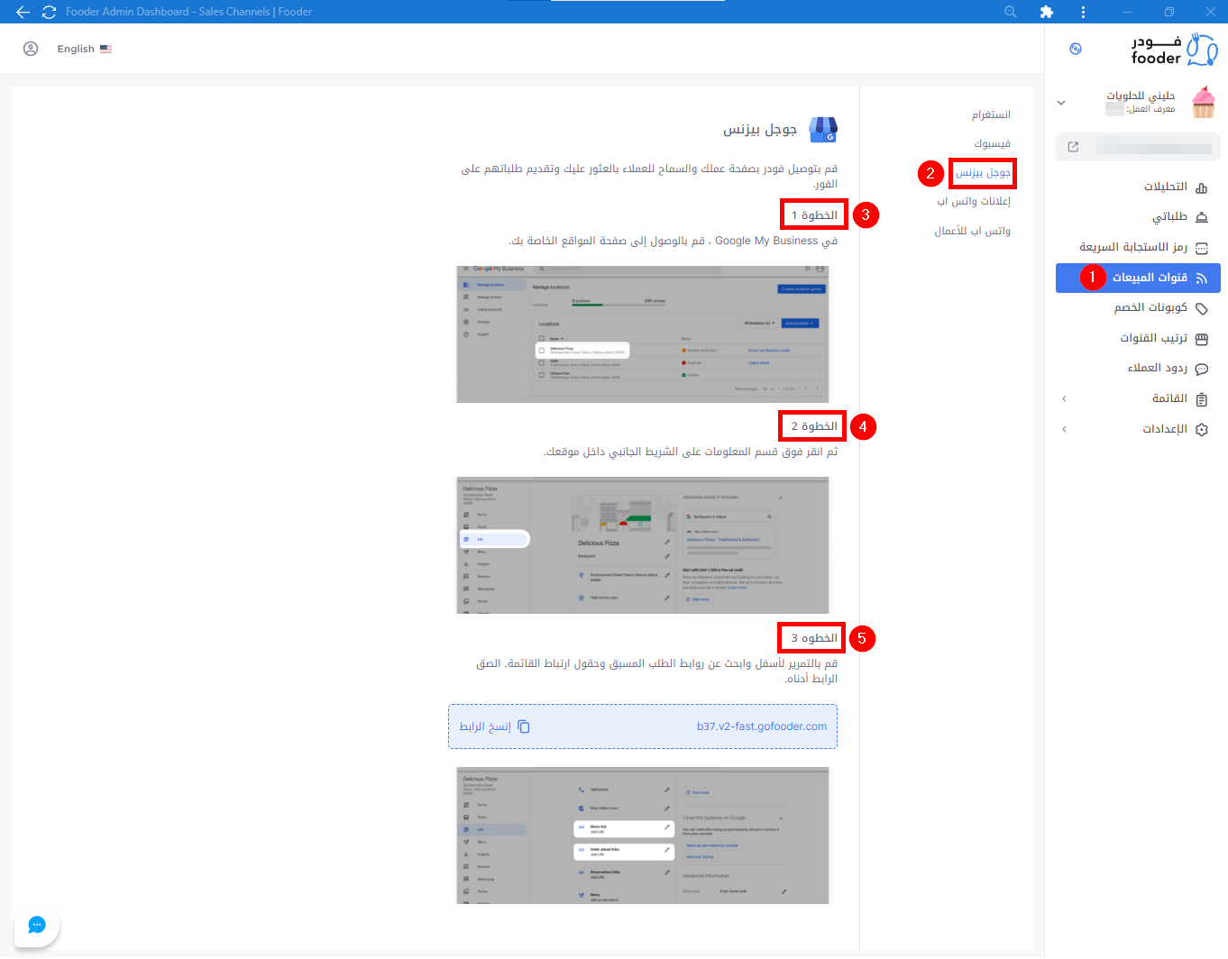 كما استعرضنا في هذا المقال سابقاً كيفية إتاحة ميزة آراء العملاء من خلال لوحة التحكم الخاصة بحسابنا، سنستعرض في هذا المقال الخطوات لاستعراض ردود العملاء المستلمة. بالدخول إلى لوحة التحكم الخاصة بالحساب على فودر لايت Fooder Lite وكما موضح بالخطوات ...